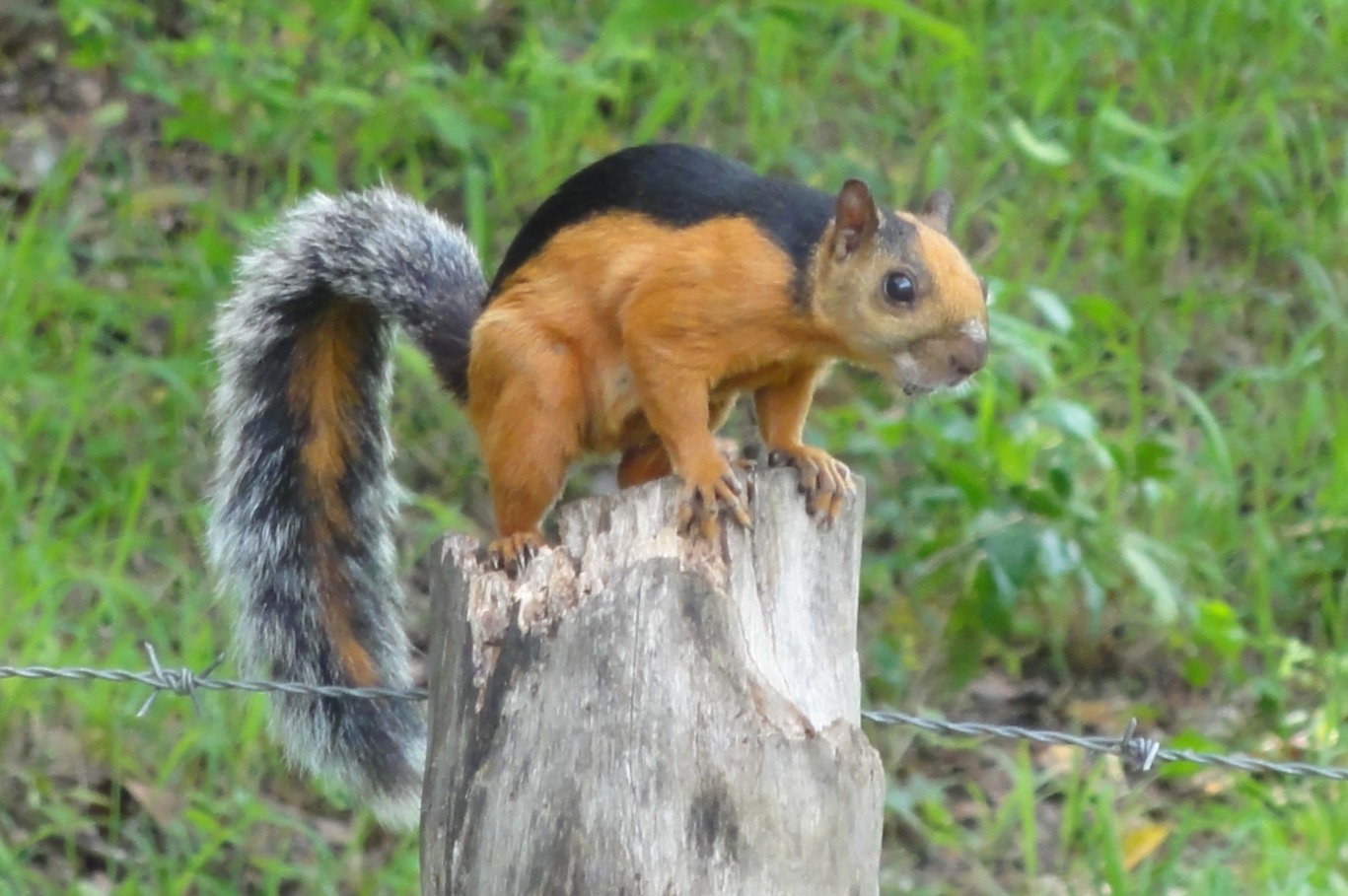 Late on afternoon, while Lupé was foraging along the riverbank, she heard a commotion in the trees. Looking up she saw Angleo and Max running around a large cluster of leaves piled up between some tree branches. It was big and round and had a small hole in it. They tried to stick their hands into a small hole, but they could not do it. Nearby an angry mother squirrel was chattering and scolding the monkeys to stay away. The monkeys were responding with angry barks. They wanted whatever was in the leaf cluster.